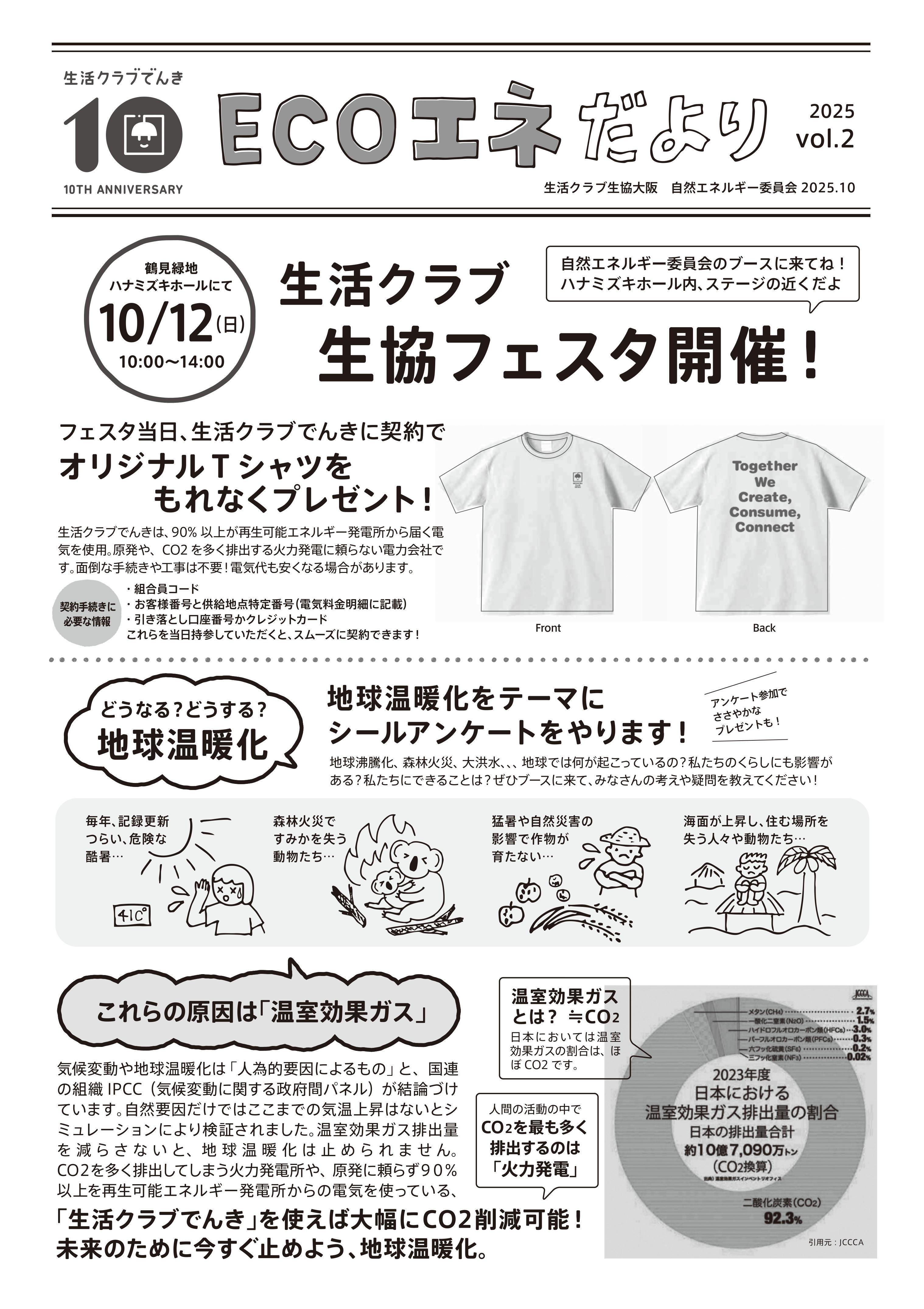 ECOエネだより 10/12フェスタ当日、生活クラブでんきに契約でオリジナルTシャツをプレゼント!
