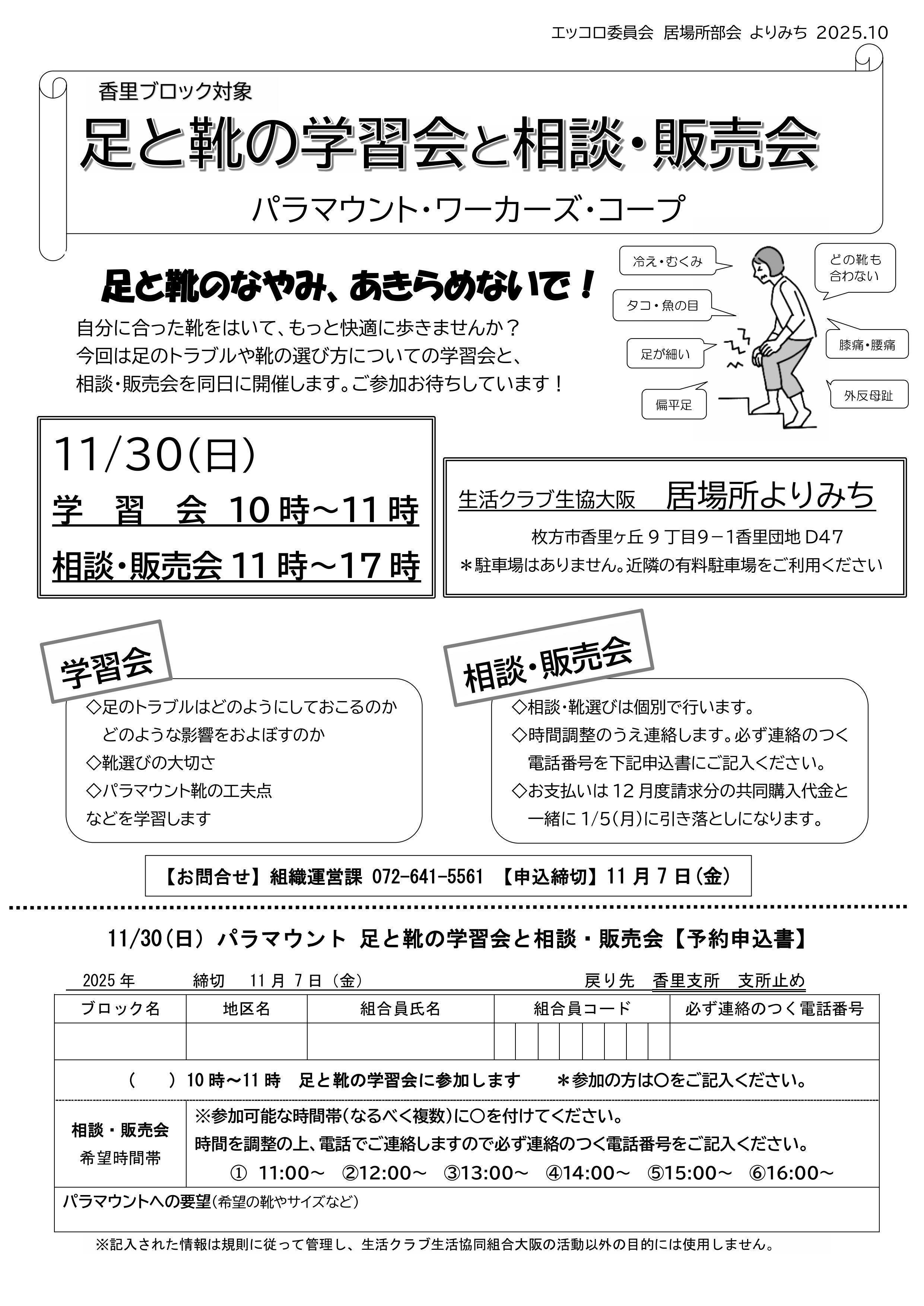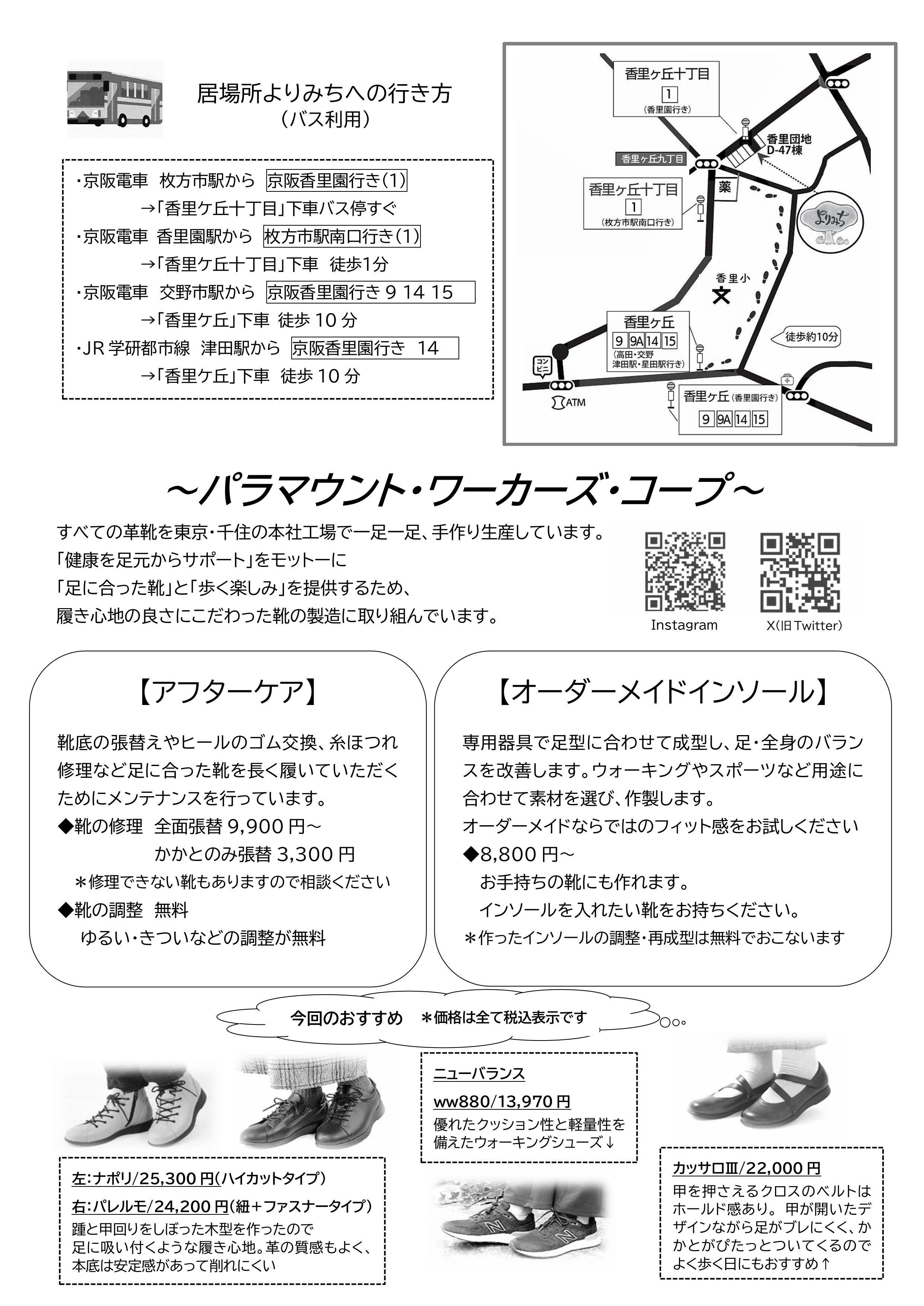 (香里支所 配達エリアの組合員限定)パラマウント 足と靴の相談・販売会