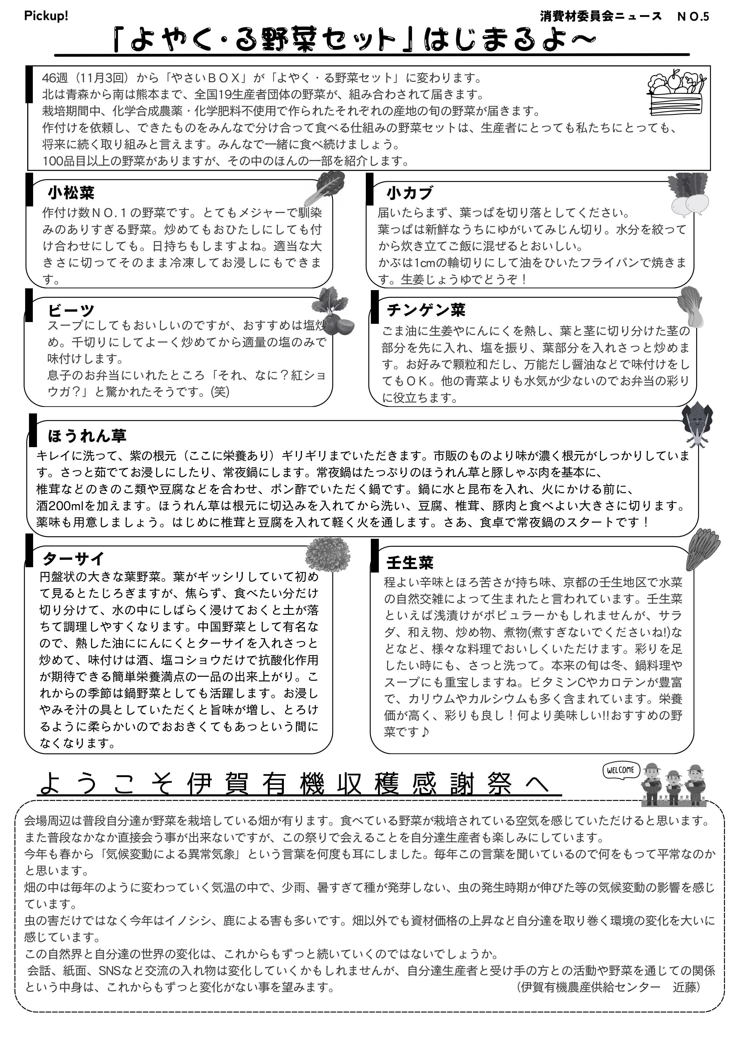 消費材委員会ニュース№5(46週・11月3回から)「よやく・る野菜セット」はじまるよ~