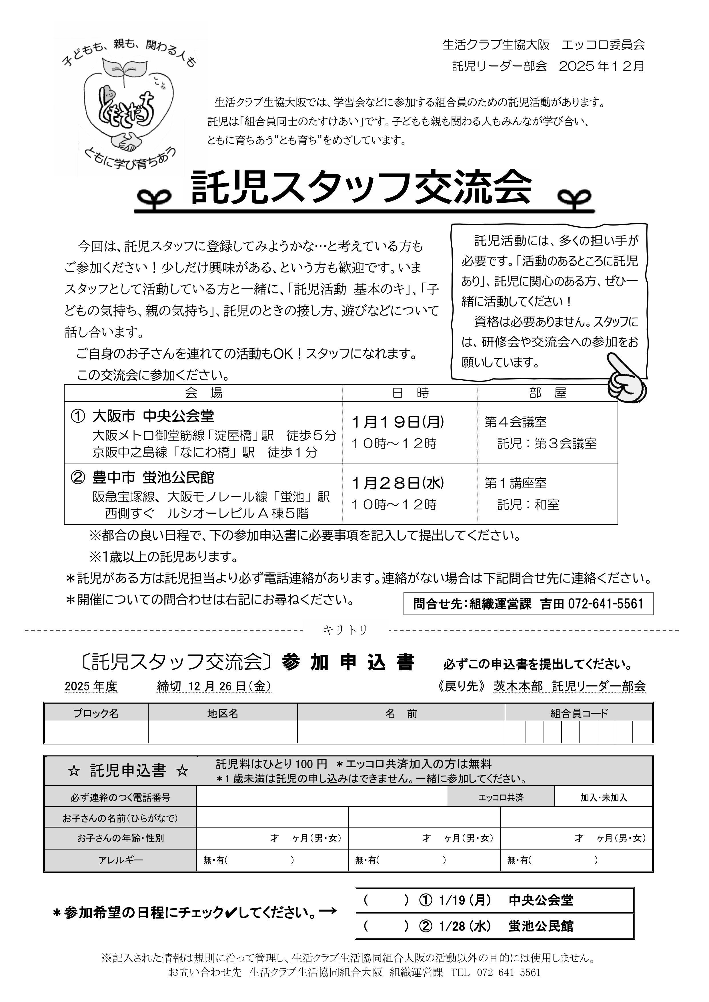 12/26〆切【1/19・1/28開催】託児スタッフ交流会