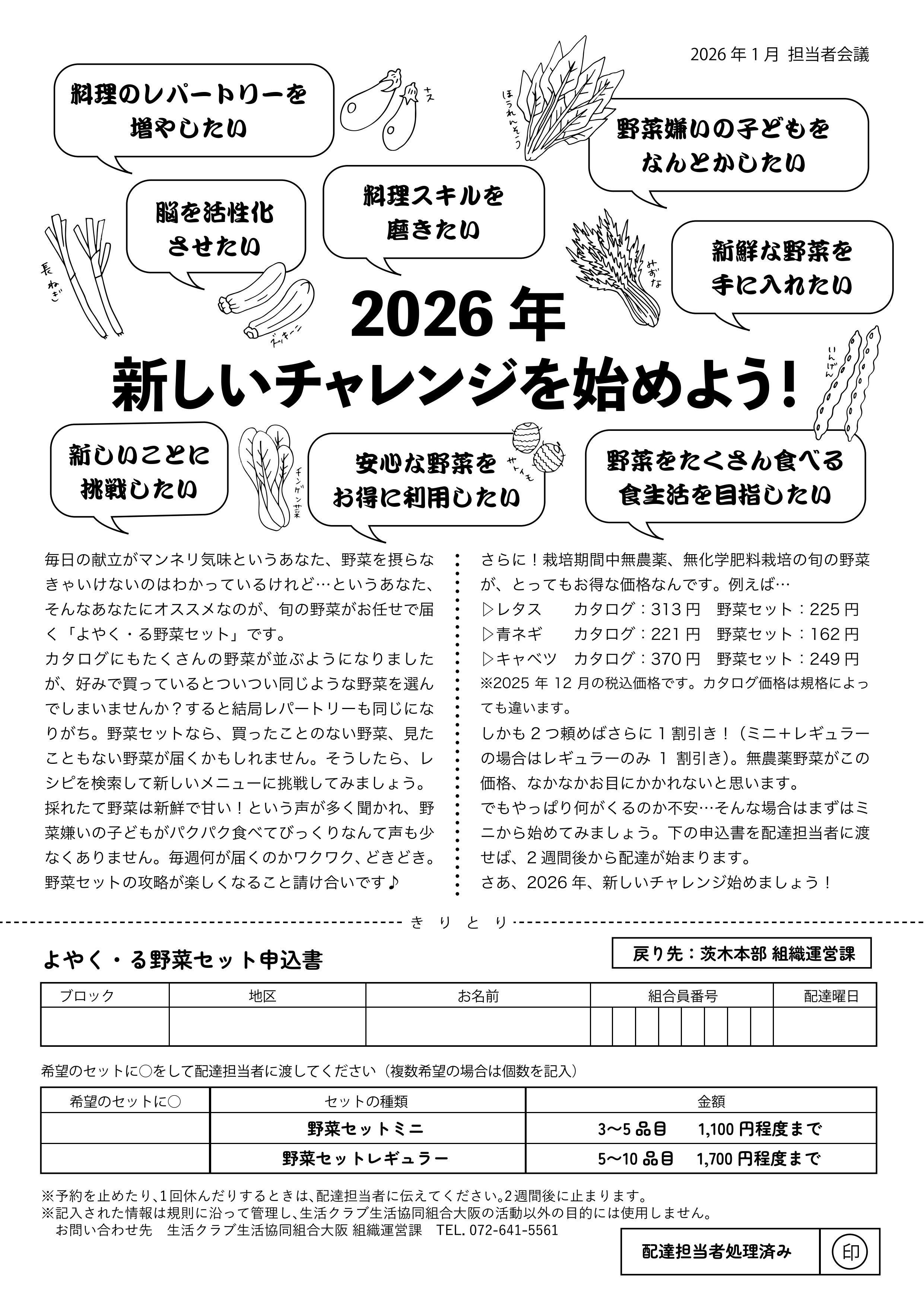2026年 新しいチャレンジを始めよう! よやく・る野菜セット申込書付き