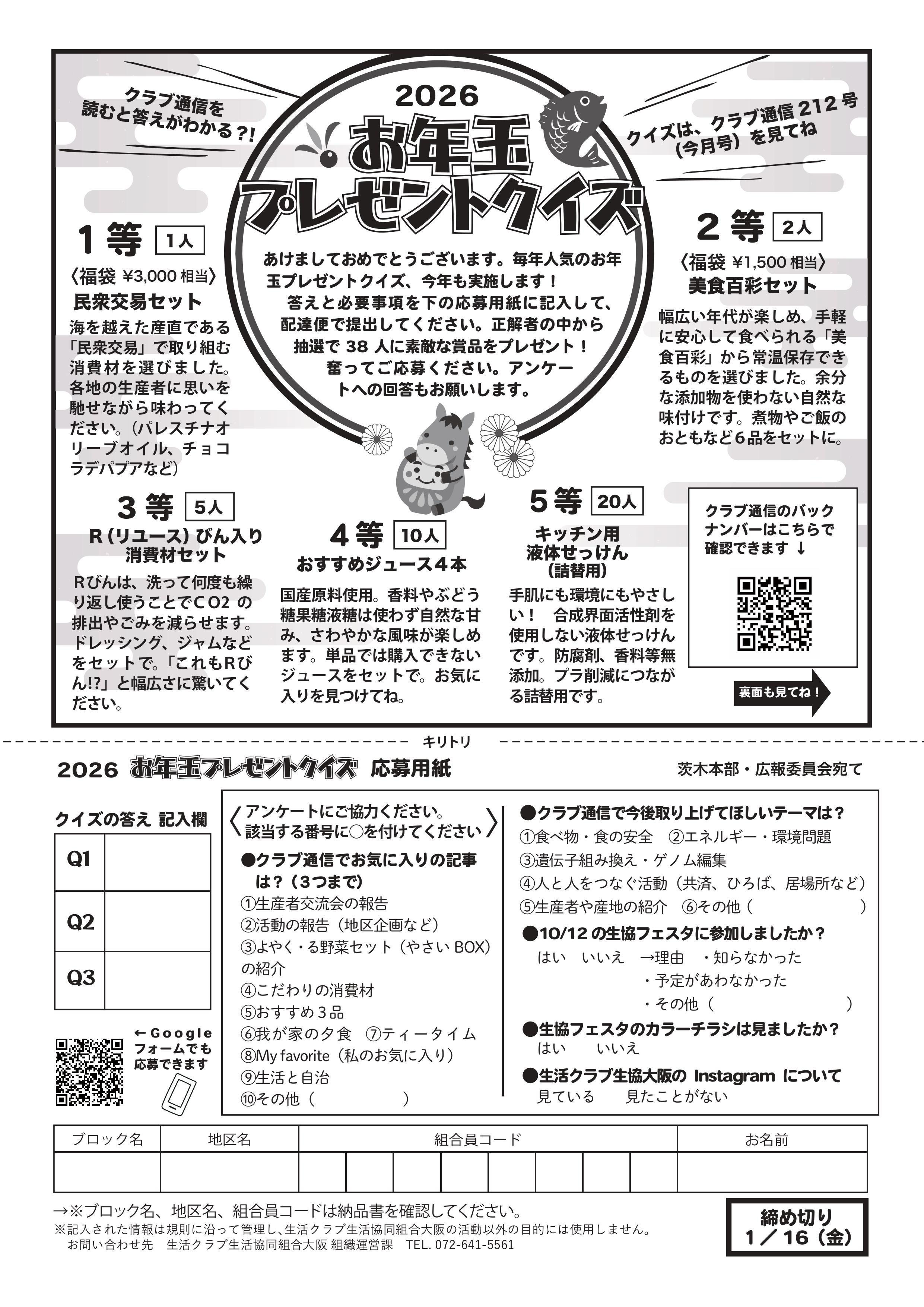 (※1/16締切厳守※) 2026 お年玉プレゼントクイズ