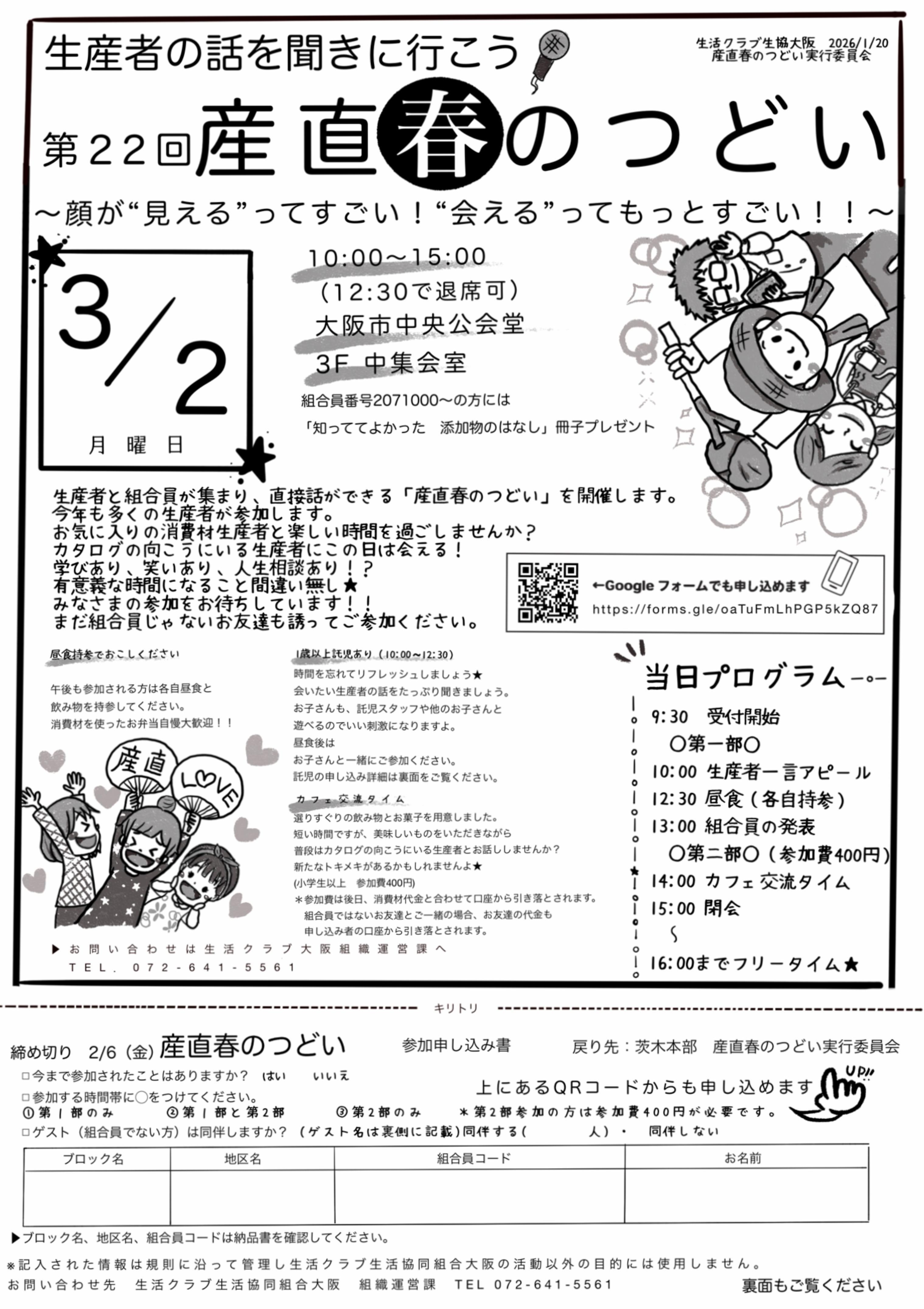 託児あり:2/6、託児なし:2/20〆切【3/2開催】第22回 産直🌸春のつどい
