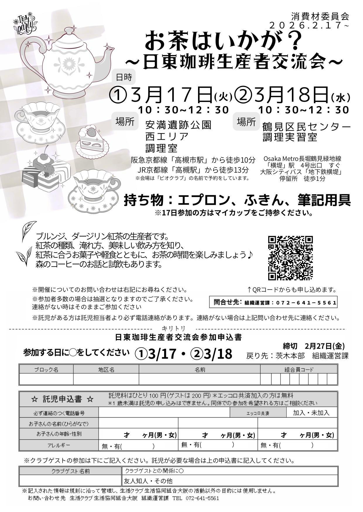 2/27〆切【①3/17②3/18開催】日東珈琲生産者交流会