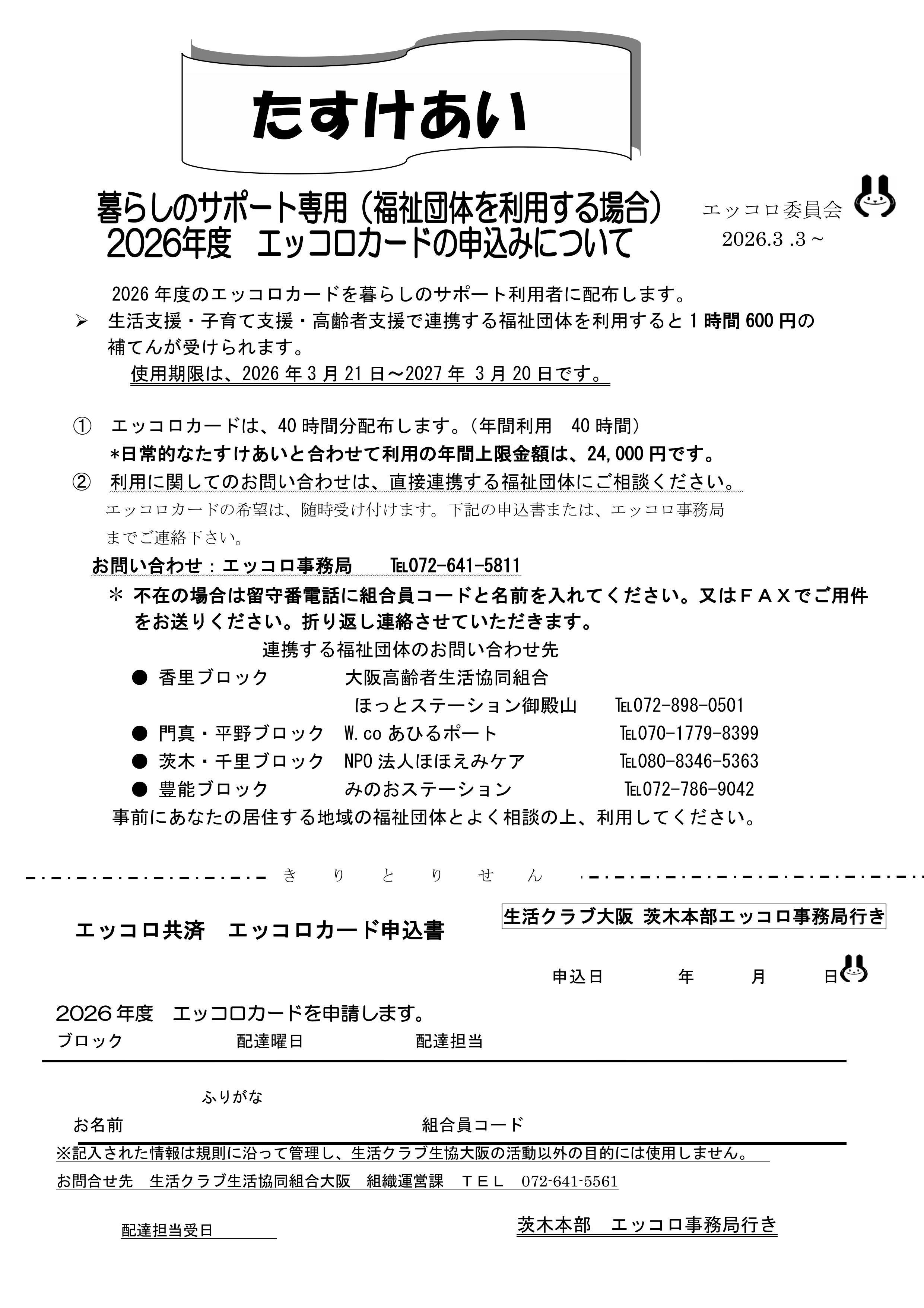 2026年度エッコロカード申込みについて 暮らしのサポート専用(福祉団体を利用する場合)