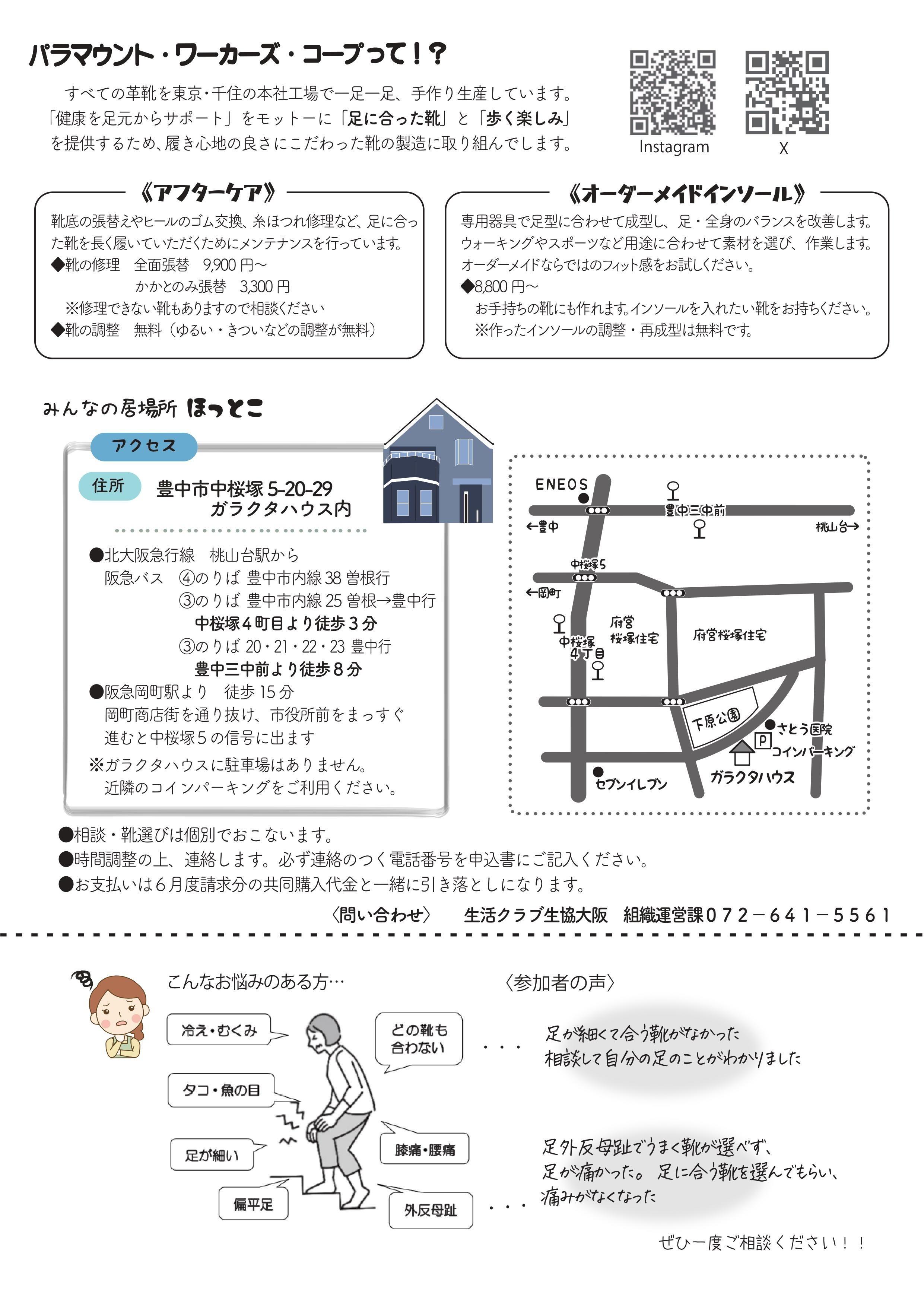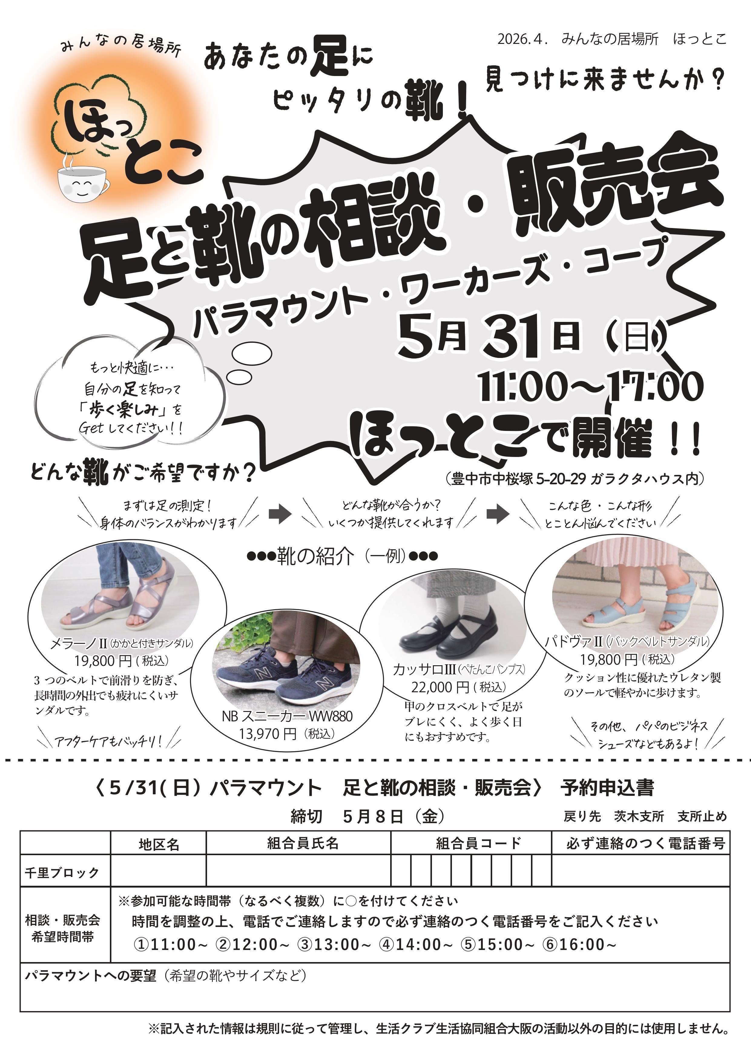 (茨木支所配達エリア組合員限定)居場所ほっとこ パラマウント靴の相談・販売会